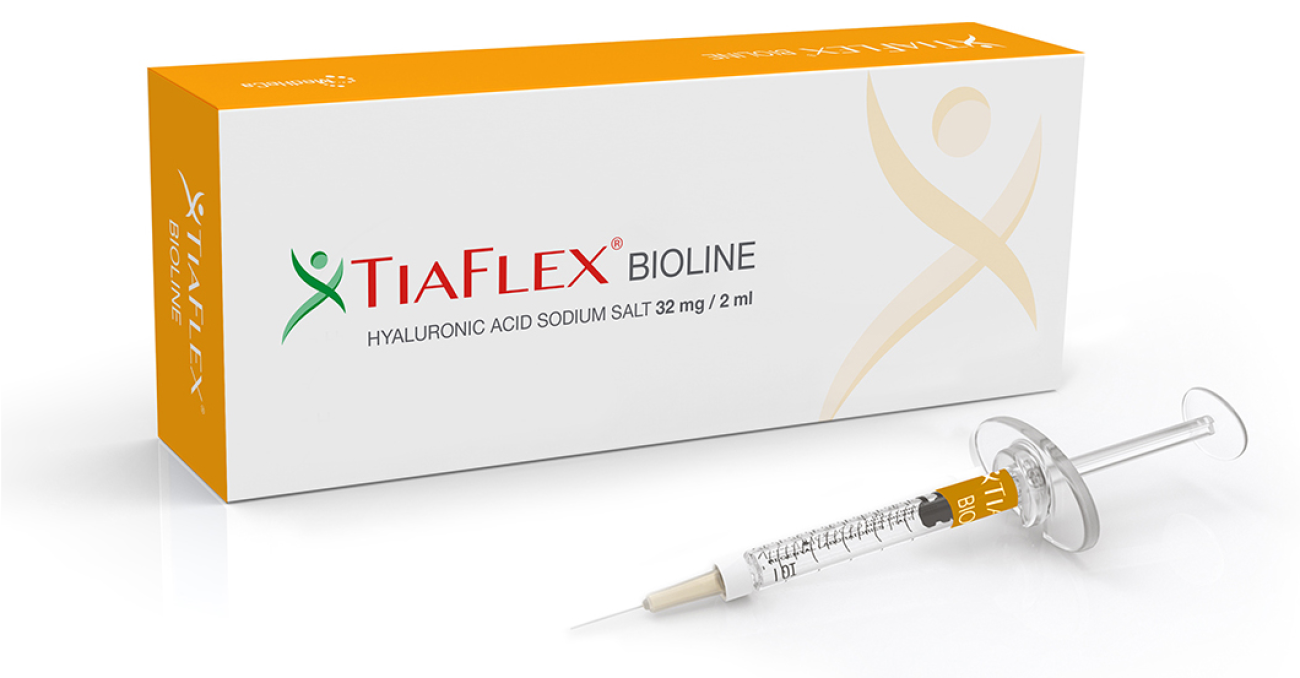 BIOLINE is an intra-articular injectable medical device based on HYALURONIC ACID with a molecular weight 800 - 1.200 kDa packed in a 2 ml pre-filled syringe (32 mg/2 ml).